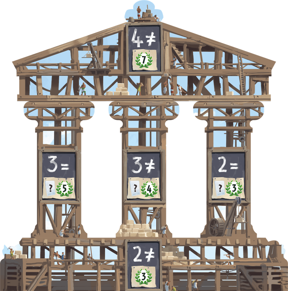 Architekci 7 cudów świata to dynamiczna gra rodzinna, doskonała na początek przygody z planszówkami! Podczas rozgrywki staramy się wznieść własną budowlę, jak najlepiej wykorzystując efekty dostępnych kart. W swojej turze wybierasz 1 z 3 kart, na których znajdziesz różne postacie pomocne w zdobywaniu surowców do budowy cudów, dokonywaniu odkryć naukowych oraz toczeniu bitew z sąsiadami.