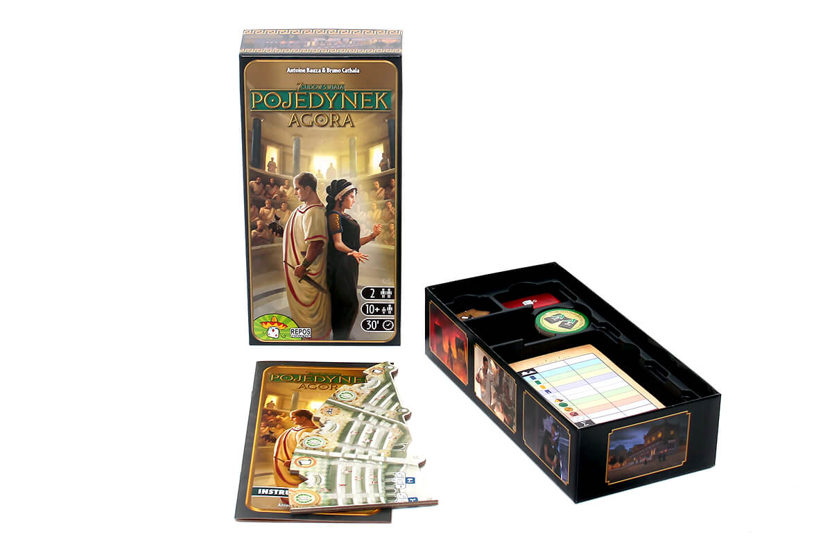 Dodatek Agora wprowadza senatorów, którzy dążą do zwiększenia swoich wpływów. Z ich udziałem spróbujecie przejąć kontrolę nad przebiegiem posiedzeń, by czerpać korzyści z wydawanych dekretów. Będziecie też mogli zwrócić się o pomoc do spiskowców, którzy swoimi knowaniami mogą zupełnie zmienić układ sił.