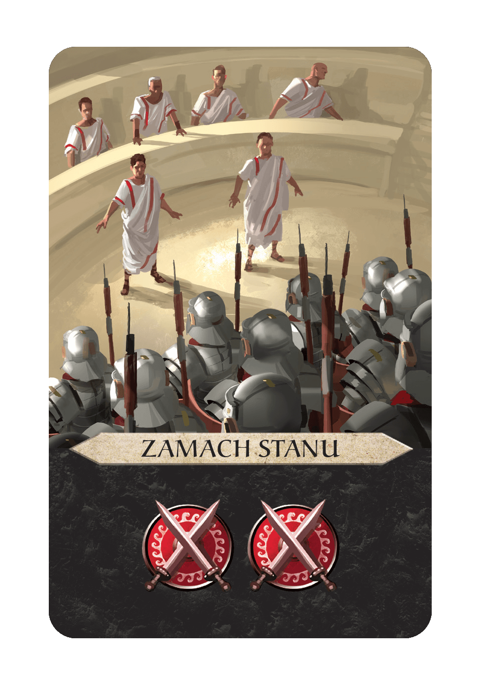 - Związany z tym nowy warunek końca gry: jeśli jeden z graczy będzie kontrolował wszystkie 6 sal posiedzeń senatu, natychmiast wygrywa.