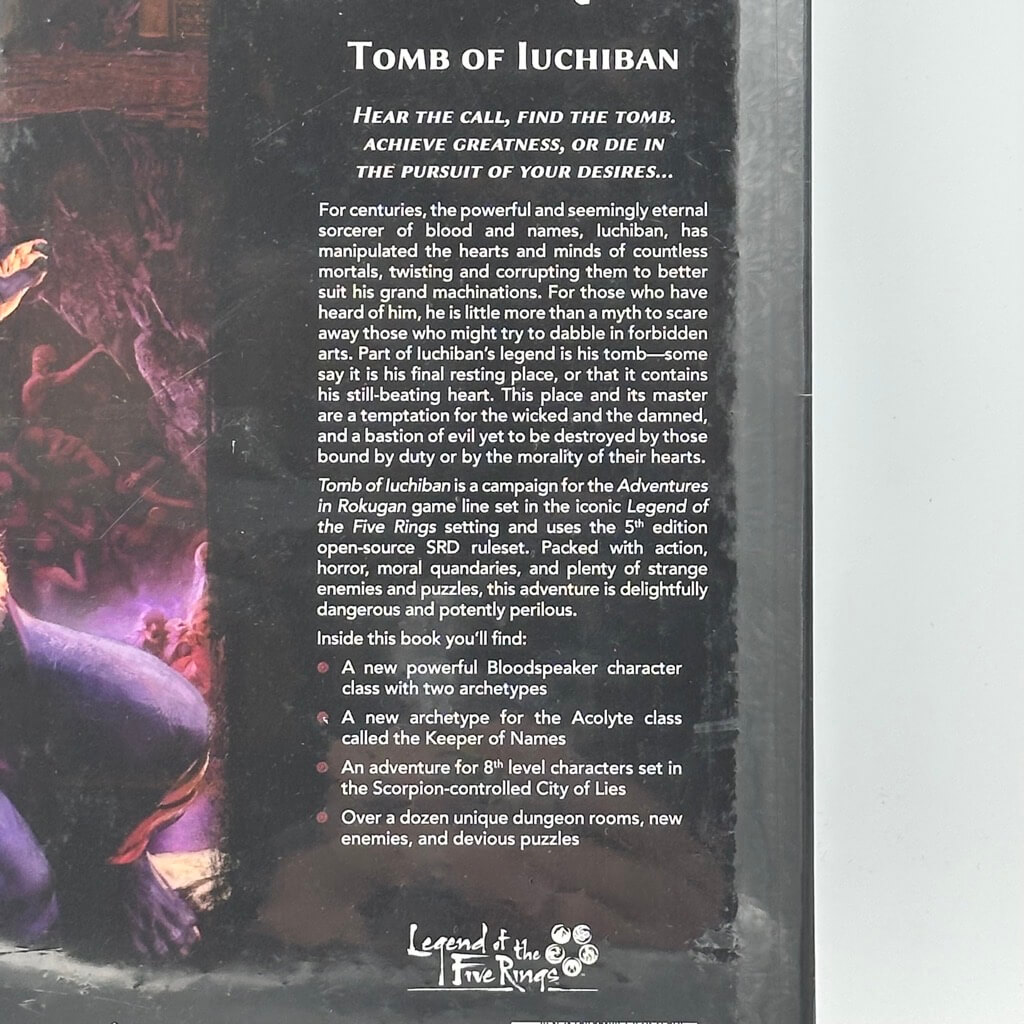 To absolutny rarytas i monumentalny moduł przygodowy z gatunku "Dungeon Crawl" dedykowany systemowi Adventures in Rokugan (5E). W tej niezwykle niebezpiecznej, naszpikowanej pułapkami przygodzie odważni samurajowie (bohaterowie graczy) zstępują do zamkniętego przed wiekami więzienia-grobowca Iuchibana – jednego z największych i najbardziej przerażających manipulatorów magią krwi w historii Szmaragdowego Cesarstwa. To epickie wyzwanie dla doświadczonych w bojach drużyn. Aby rozegrać przygodę, wymagany jest podręcznik Adventures in Rokugan.