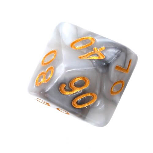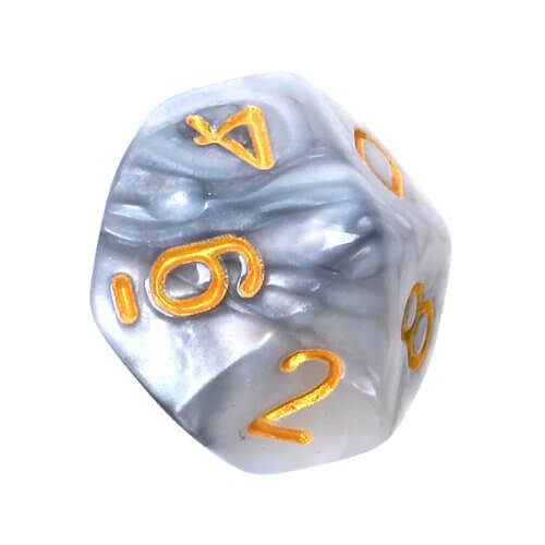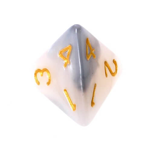 Dwukolorowo Stalowo-białe (złote cyfry), zestaw kości