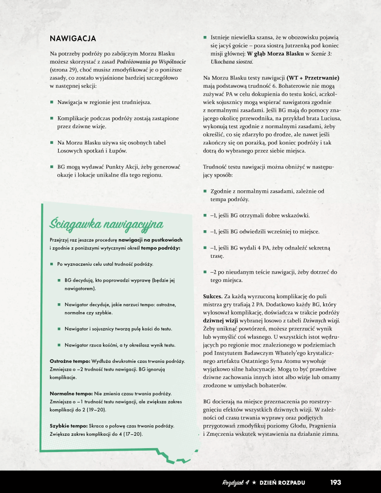 - Zasady Przetrwania w Zimie: Kompletne reguły dotyczące wyczerpania, podróżowania podczas zamieci, rozpalania ognisk i utrzymywania odpowiedniej temperatury ciała (zmieniony system trudności).