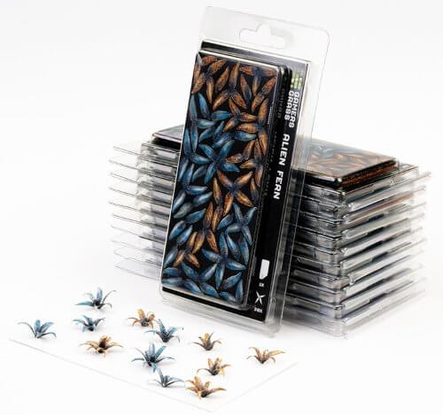 Ten arkusz zawiera 38 liści paproci kosmicznej w różnych kolorach i rozmiarach do wykorzystania w modelach redukcyjnych, figurkach hobbystycznych i malowniczych dioramach.