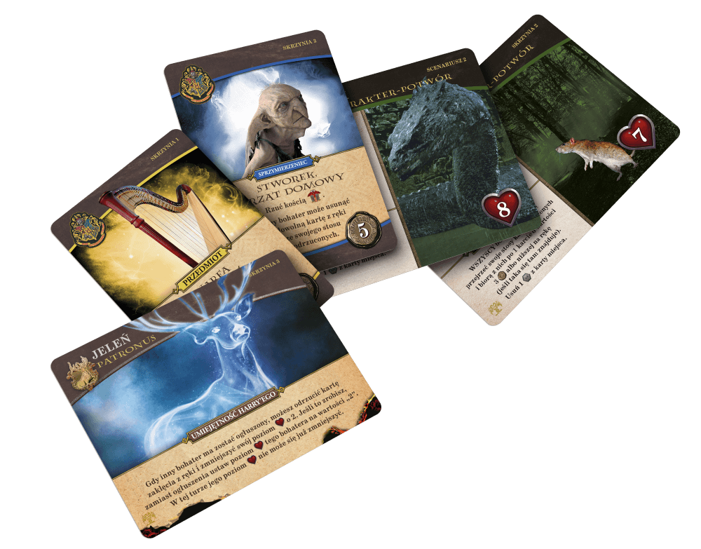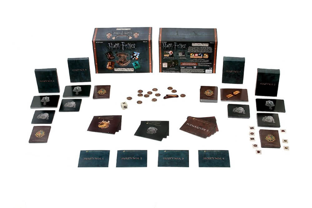 To kooperacyjna gra karciana w której, jako HARRY POTTER™, RON WEASLEY™, HERMIONA GRANGER™ i NEVILLE LONGBOTTOM™, stawiacie czoła serii mrocznych zdarzeń w tytułowej szkole dla czarodziejów. W trakcie gry zmierzycie się z drużyną czarnych charakterów, którzy stopniowo, miejsce po miejscu, próbują podporządkować sobie świat czarodziejów.