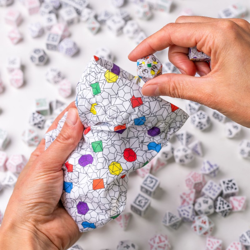 - Duża pojemność: Wnętrze woreczka jest nadspodziewanie przestrzenne. Z łatwością pomieści około 35 standardowych kości (co przekłada się na aż 5 klasycznych, 7-elementowych zestawów do gier RPG!).