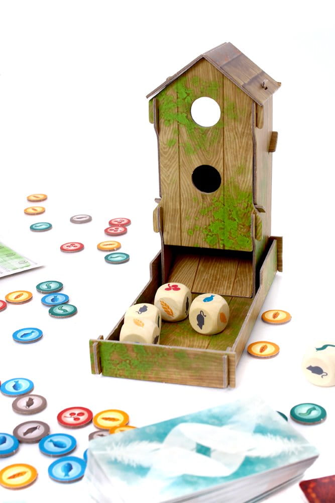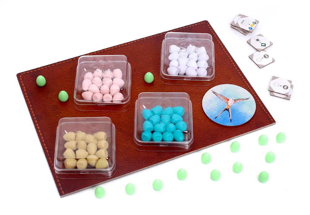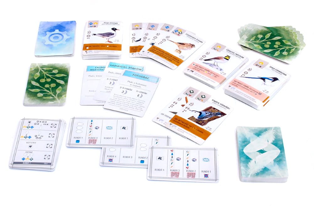 • Już przy pierwszym kontakcie gra zwraca uwagę estetyką wykonania i dopracowaniem poszczególnych elementów. W pudełku znajdziemy wieżę na kości w kształcie ptasiego karmnika, figurki jajek, specjalną tackę na karty, a także – a może przede wszystkim – karty ptaków ozdobione przepięknymi grafikami. Obcowanie z tak wykonaną grą jest niezwykle przyjemne.