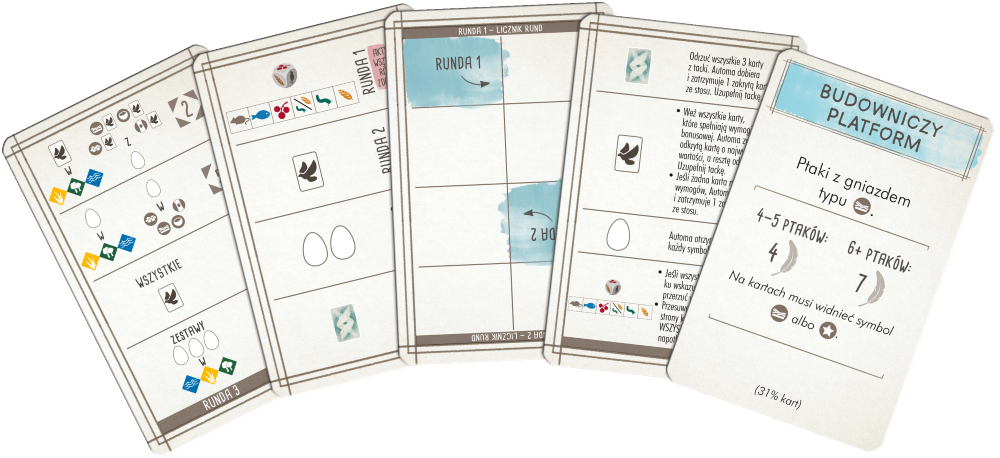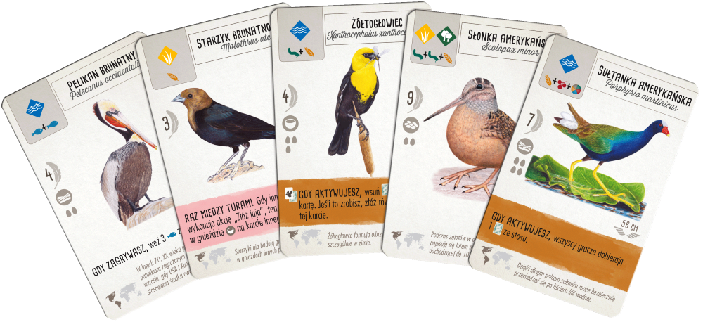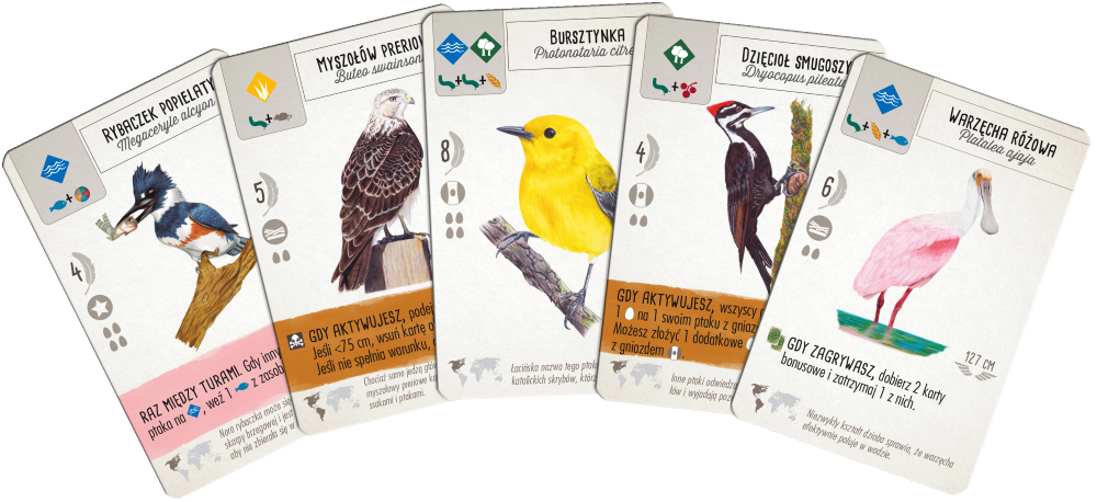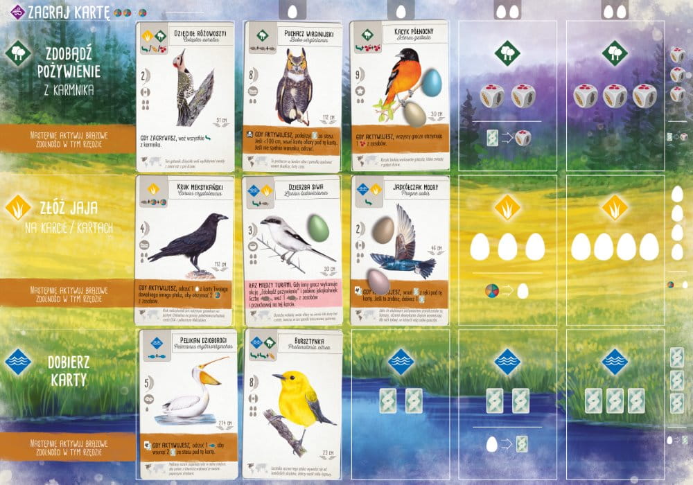 Trzy ostatnie akcje powodują również aktywację zdolności ptaków w danym rzędzie, co oznacza, że możemy skorzystać z efektów opisanych na kartach poszczególnych ptaków.