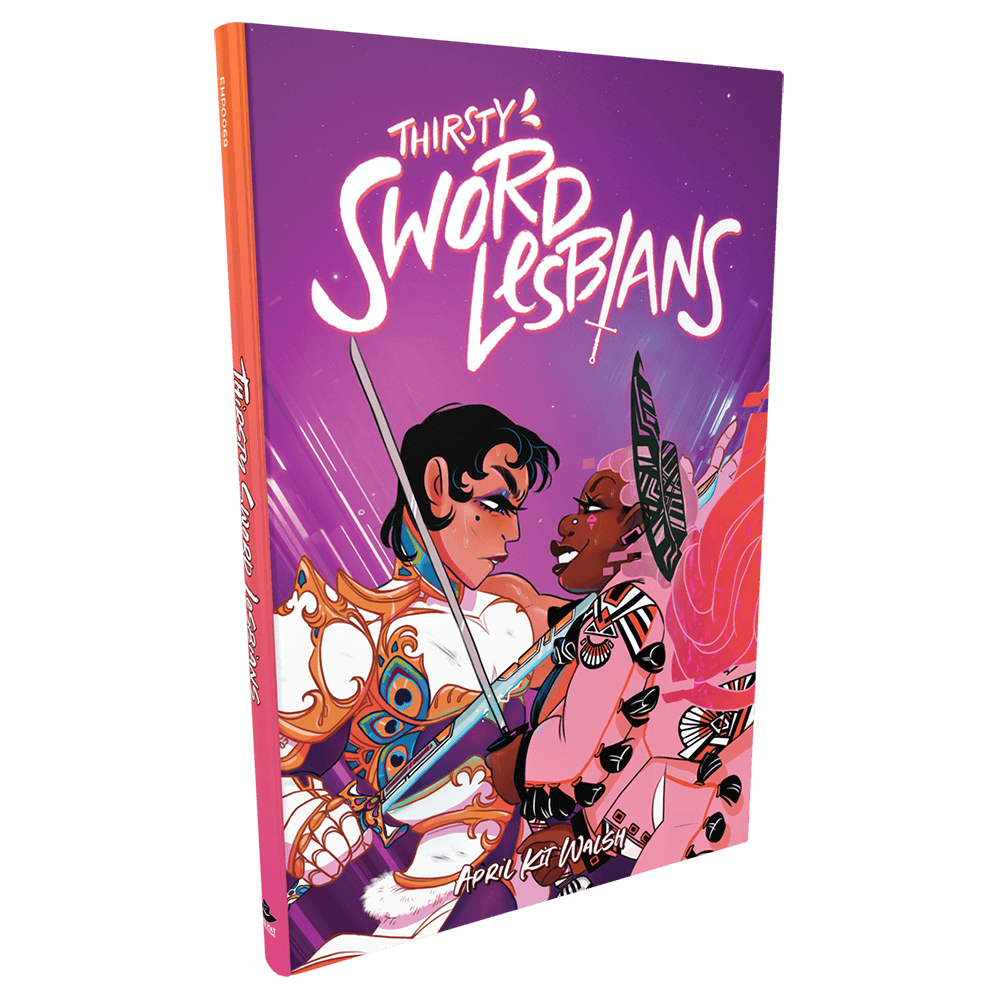 Thirsty Sword Lesbians od Evil Hat Productions to podręcznik, w którym znajdują się wszystkie przepisy na przygodowe, niebanalne, queerowe love story osadzone w dowolnym miejscu akcji.