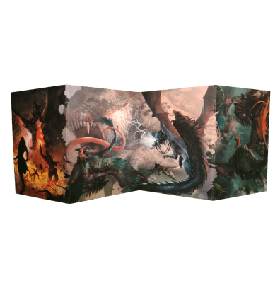 Ekran Mistrzyni lub Mistrza Gry dedykowany Smoczym Jeźdźcom od Lans Macabre osłoni notatki oraz najważniejsze informacje, aby nic nie przeszkodziło w odkrywaniu świata pełnego epickich przygód kawałek po kawałku.