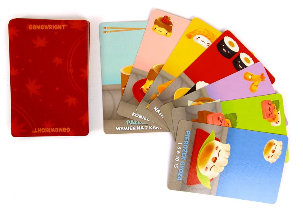 Sushi Go! wykorzystuje znaną mechanikę dobierania kart z 7 Cudów Świata dodatkowo upraszczając i skracając ją. Dzięki sprawdzonemu sposobowi wybierania kart, gra jest dynamiczna i nie ma mowy o przestojach! Wszyscy grają w tym samym czasie, a dzięki prostocie zasad gra idealnie nadaje się jako zapoznanie z mechaniką równoczesnego wyboru kart, zarówno tych, którzy nie mieli z nią jeszcze do czynienia, jak i najmłodszych graczy stawiających pierwsze kroki w graniu w gry planszowe.