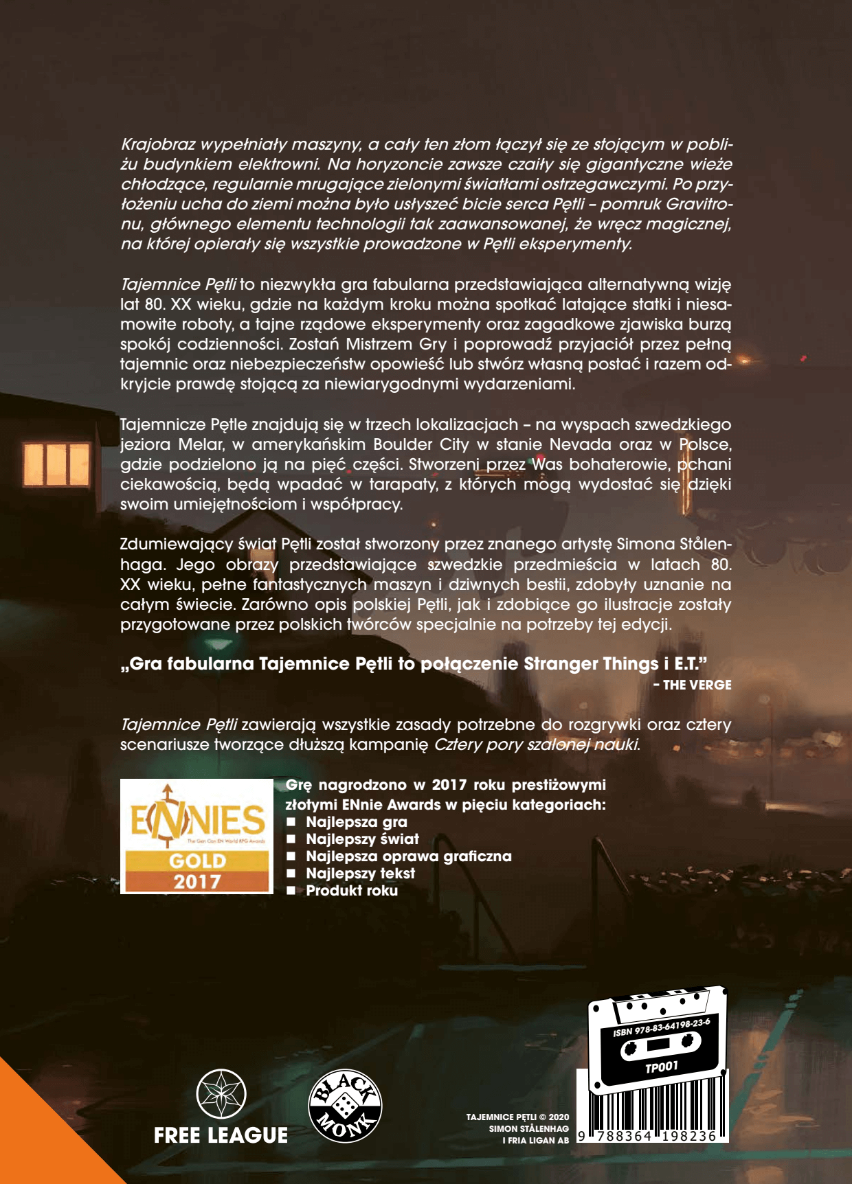 Tajemnice Pętli (ang. Tales from the Loop) to obsypana nagrodami (m.in. pięć nagród ENNIE) gra fabularna od Free League, wydana w Polsce przez Black Monk Games. Świat gry oparty jest na fenomenalnych, retro-futurystycznych grafikach Simona Stålenhaga. Uczestnicy zabawy wcielają się w role zwykłych nastolatków (Dzieciaków) żyjących w latach 80. – epoce rowerów, walkmanów i automatów do gier – która została zderzona z dziwną technologią, lewitującymi statkami i tajnymi rządowymi eksperymentami. Pod nieobecność dorosłych, drużyna musi współpracować, rozwiązując kolejne zagadki w swoim sąsiedztwie.