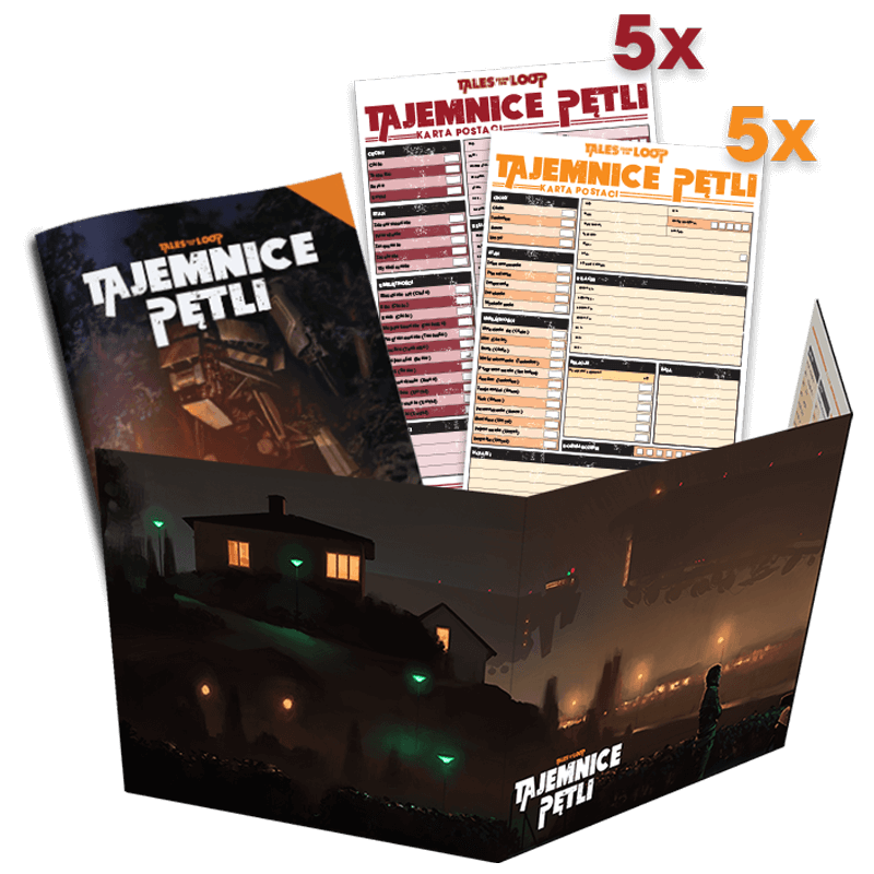 Zasobnik Mistrza Gry to doskonały zestaw pomocy fizycznych (GM Screen) do nagradzanego systemu Tajemnice Pętli (Tales from the Loop). Centralnym elementem produktu jest solidny, gruby ekran wykonany z tektury. Z zewnętrznej strony ozdobiony został niepokojącą ilustracją z retro-maszynami, a z wewnętrznej zawiera szybki podgląd na kluczowe zasady mechaniki opartej na kościach k6, skracając czas potrzebny na wertowanie ksiąg podczas napiętych, detektywistycznych sesji.