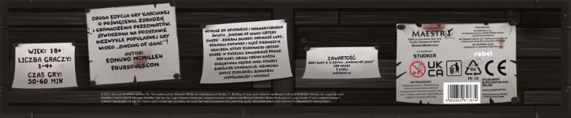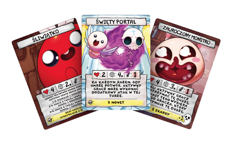 Wejdź do upiornego i makabrycznego świata, zbieraj skarby, gromadź łupy, pokonuj potwory i bądź pierwszym graczem, który przejmie kontrolę nad najcenniejszym dobrem na świecie! The Binding of Isaac: Cztery dusze to druga edycja karcianki o poświeceniu, zdradzie i gromadzeniu przedmiotów stworzona na podstawie niezwykle popularnej gry wideo. W pudełku znajdziesz ponad 300 kart, dzięki czemu każda rozgrywka będzie zupełnie inna. Odkryj zabójcze kombinacje, wzmocnij swoje zdolności, zdradzaj innych i wygraj!
