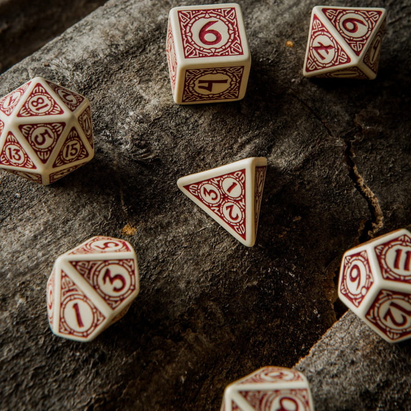 To znakomity, kompletny zestaw luksusowych kości polskiej legendy na rynku akcesoriów RPG – firmy Q-Workshop. Został on stworzony z myślą o najwyższej jakości i immersji podczas gry przy stole. Ten w pełni wystarczalny arsenał (z reguły składający się z kości K4, K6, K8, K10, K00, K12 i K20) pozwala obsłużyć absolutnie każdy test ataku, zdolności, obrażeń i obrony w grach fabularnych.