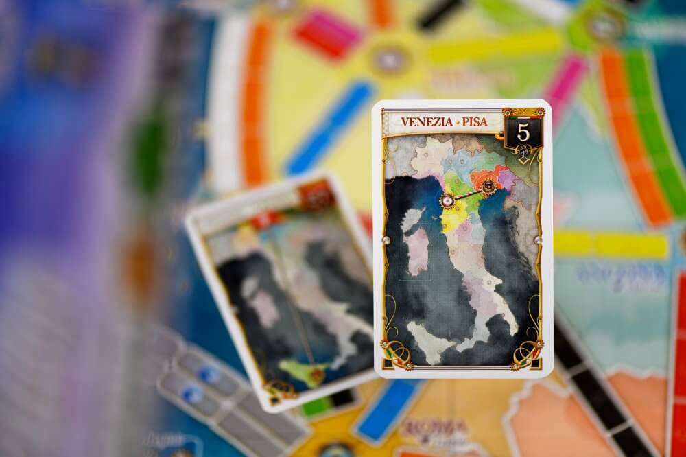 Ten dodatek zawiera również podzieloną na regiony mapę Włoch. Im więcej regionów połączysz, tym więcej dodatkowych punktów wpadnie na Twoje konto! Dodatkowo do gry dołącza nowy rodzaj połączeń promowych - ich budowanie będzie trudniejsze dzięki wykorzystaniu specjalnych kart Promów.
